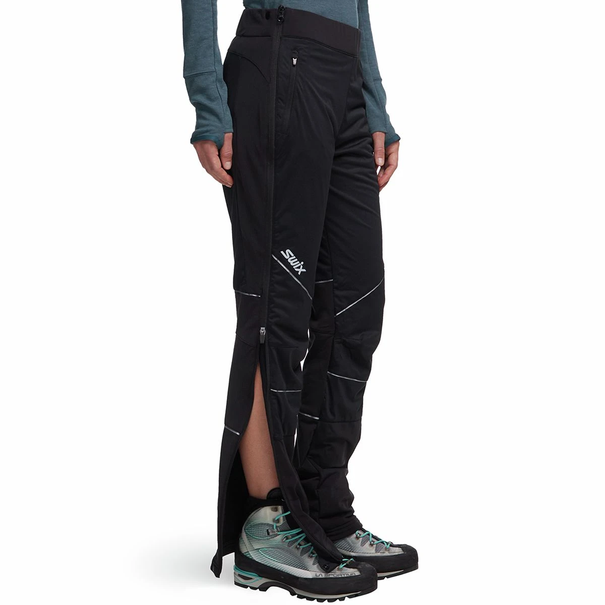 - Side Zips: full-length